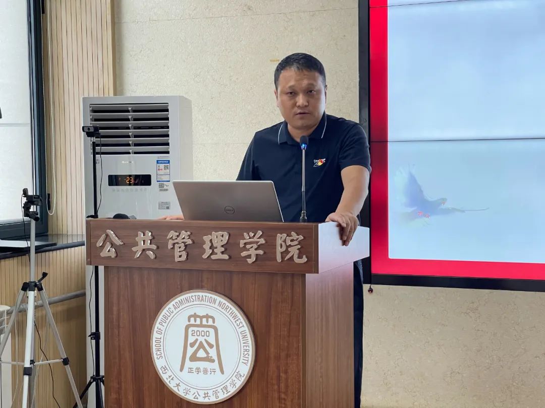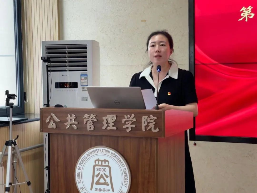 党员代表研究生联合党支部书记刘泓贤同志以“初心如炬,嘉言如丹,双肩如铁:伟大工程视域下党建与科研互促融合之道”为题,基于伟大工程视域,介绍样板支部建设经验以及个人从事党务工作的实践经历的心得体悟,与全体党员共勉同行。