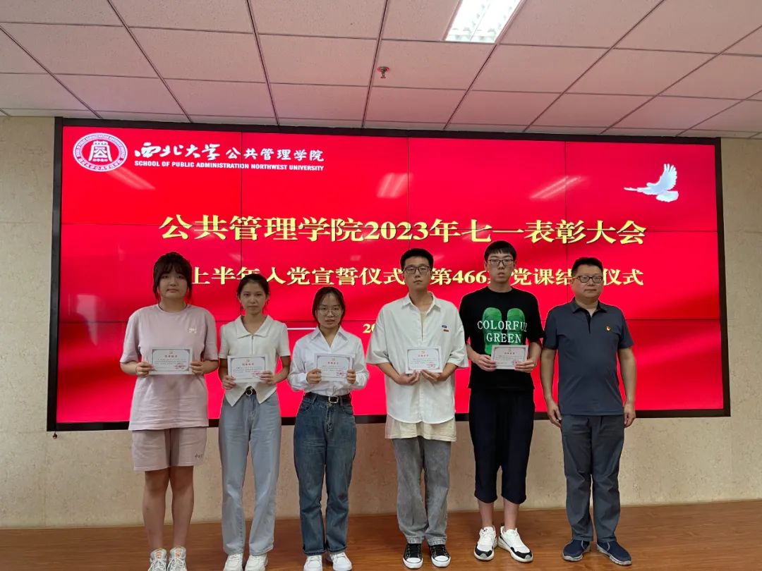 为庆祝中国共产党成立102周年,深入推进主题教育,弘扬党的优良传统,激励全体党员不忘初心、牢记使命,展示和表彰一年来各党支部、广大党员在工作中取得的丰硕成果,发扬典型模范引领作用,7月7日14:00,我院于西学楼北1304多媒体会议室召开2023年七一表彰大会暨上半年入党宣誓仪式、第466期党课结业仪式。