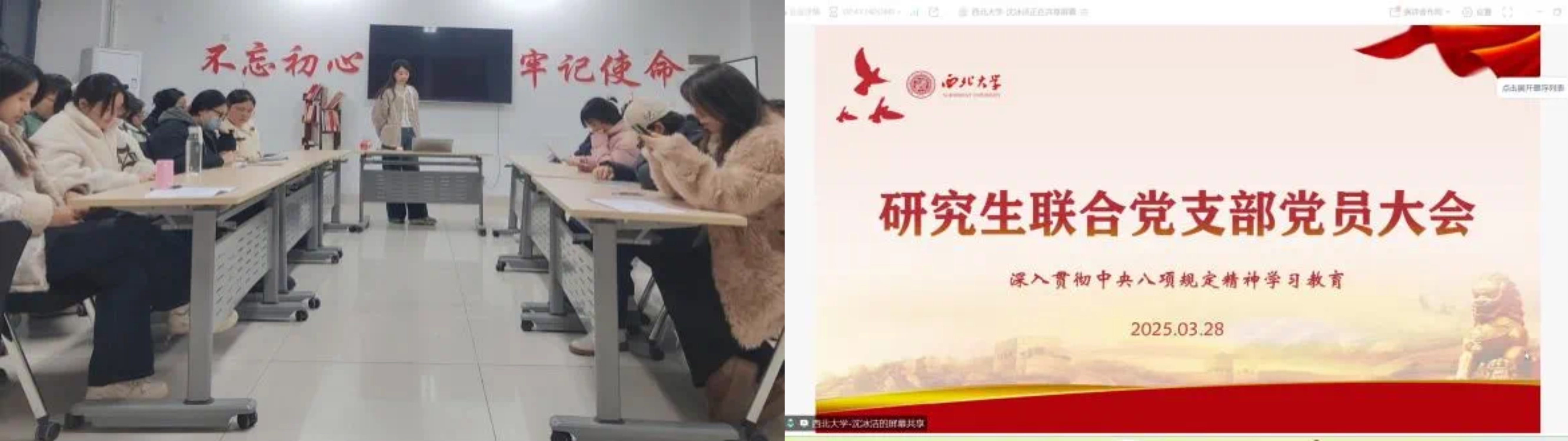 2025年3月28日,研究生联合党支部于西学楼1515教室召开党员大会暨深入贯彻中央八项规定精神学习教育会,会议旨在全面落实党中央决策部署要求,持续深化作风建设,教育引导党员锲而不舍落实中央八项规定精神,进一步增强支部全体党员的纪律意识、规矩意识和作风意识,以优良作风凝聚党心民心。