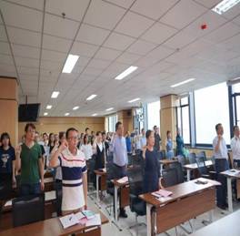 院党委负责人宣布我院师德师风宣传教育全面启动,为全院教职工印制并发放《师德师风宣传材料》、制作宣传专栏、全体教师签订师德承诺书、带领全体教师庄严宣誓。通过深入宣传习近平总书记关于主题教育的重要讲话和重要批示精神,深入宣传学习党中央精神、主题教育的重要意义、工作进展和实际成效,落实总书记“四有好老师”标准、全院教职工将坚持以人民为中心、以师生为本,勇担职责使命,焕发干事创业的精气神,以德立身、以德立学、以德施教、以德育德,营造风清气正的政治生态和良好育人氛围。随后,学院将通过“两微一端”将我院师德师风典型做好宣传,重点宣传先进典型坚守初心使命、敢于担当作为的良好风尚。结合新中国成立70周年庆祝活动,以丰富多彩的形式传播党的理论,讲好师德师风先进典型的故事,传递我眼中的公管精神正能量,同时为“不忘初心、牢记使命”主题教育营造良好氛围。
