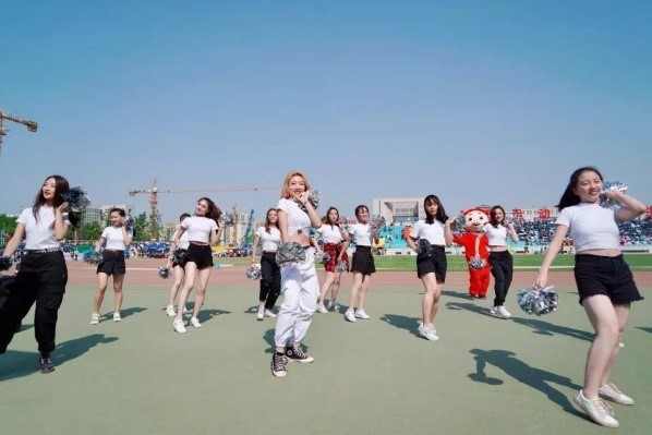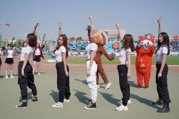 对拉拉队队员以及玩偶道具服里的同学都是巨大的考验