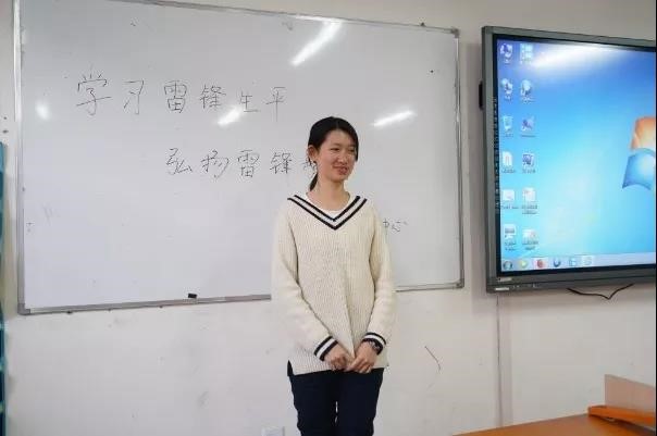 首先,陈孜睿同学分享了自己对于雷锋精神的理解。“雷锋精神”指的是爱岗敬业,助人为乐,勤俭节约等精神。“爱岗敬业”,不仅仅把工作当作谋生的工具,更要 “干一行,爱一行,精一行”; “助人为乐”,一个时刻只想着自己的人很难真正的快乐,只有为他人着想的人才能真正快乐;“勤俭节约”,一个只知道挥霍的人很难成为有钱的人,只有勤俭节约才能获得财富。
