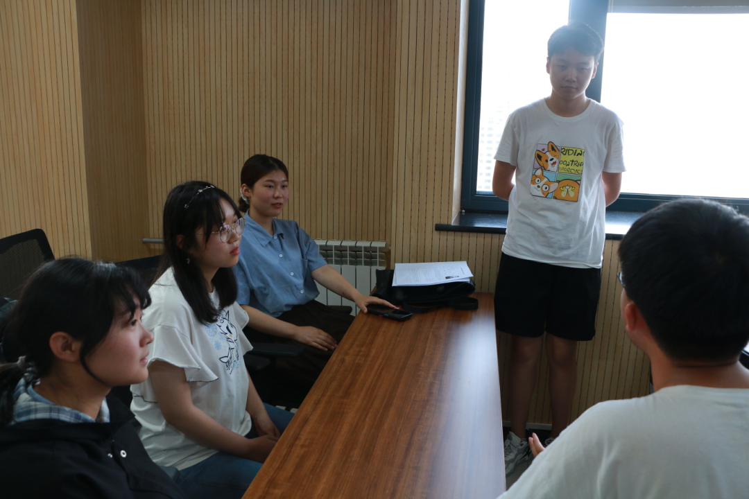 会议伊始,全媒体各组负责人进行工作总结。采写组、秘培组、网编组和影像组的负责人依次上台发言。他们分别总结了过去学年的工作成果,同时也提出了组内未来的规划,也对在座的各位组员予以肯定和鼓励。