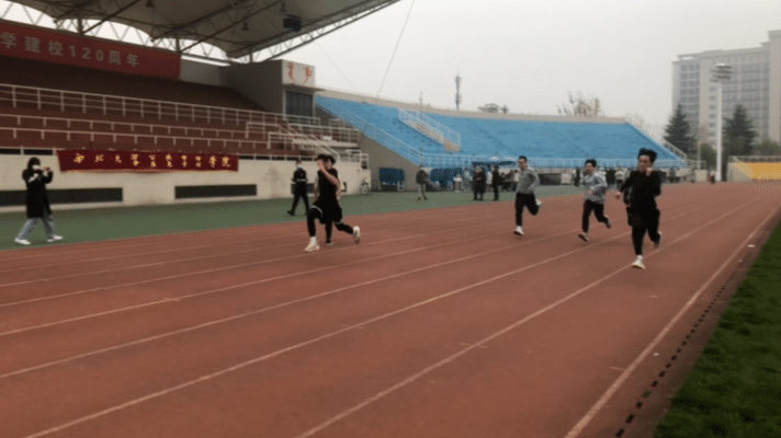 操场上“珍爱生命,热爱运动”八个大字熠熠生辉,操场中的公管学子用青春热血诠释这八个字。