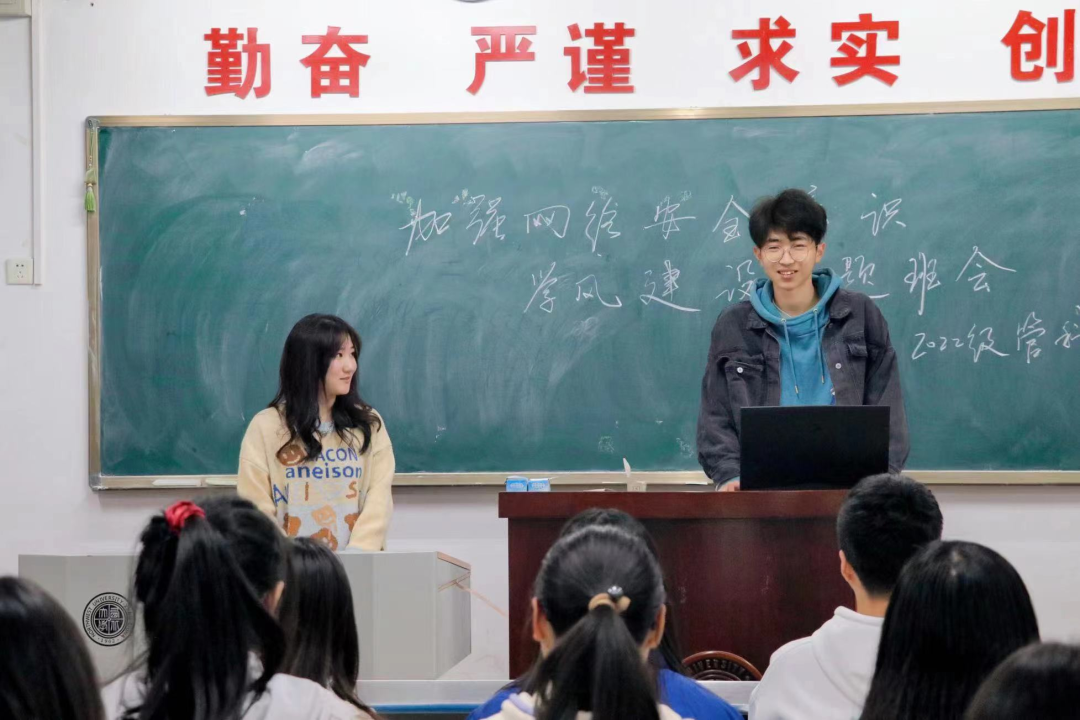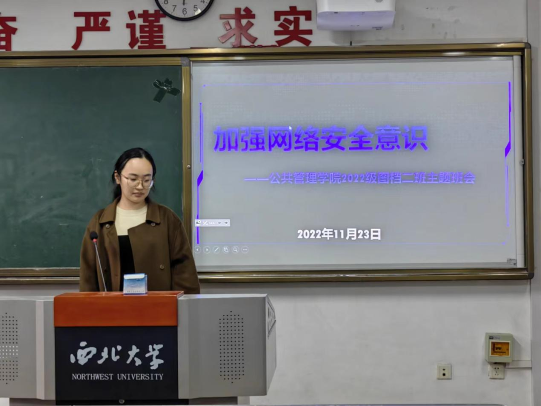 为了加强同学们的网络安全意识,管科二班于11月23日召开了网络安全主题班会,组织委员姜文谦和生活委员杨斯锐讲述了有关网络安全意识的必要性等内容,分享了近期有关违反网络安全条例的案例,让同学们更深刻地了解了网络安全的相关内容。会后,同学们纷纷表示要让网络安全教育警钟长鸣,共创安全网络空间。