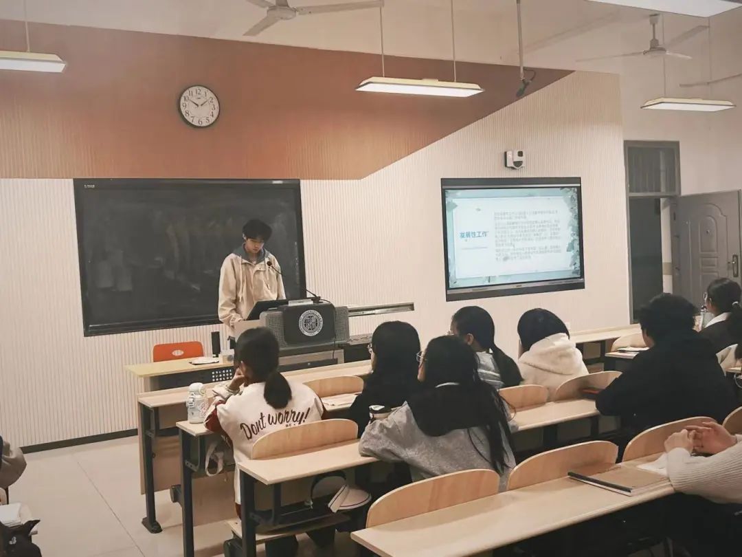 在此次活动主题班会中,学院资助社团博爱资助社成员高知默和汪毛杰,为同学们详细地介绍了学院的各项资助政策,并对上学期各项资助工作进行总结汇报。本次宣讲帮助同学们深入理解资助育人的理念,加深对学院的资助工作的认知,也增强了资助骨干对于资助工作的认识理解。