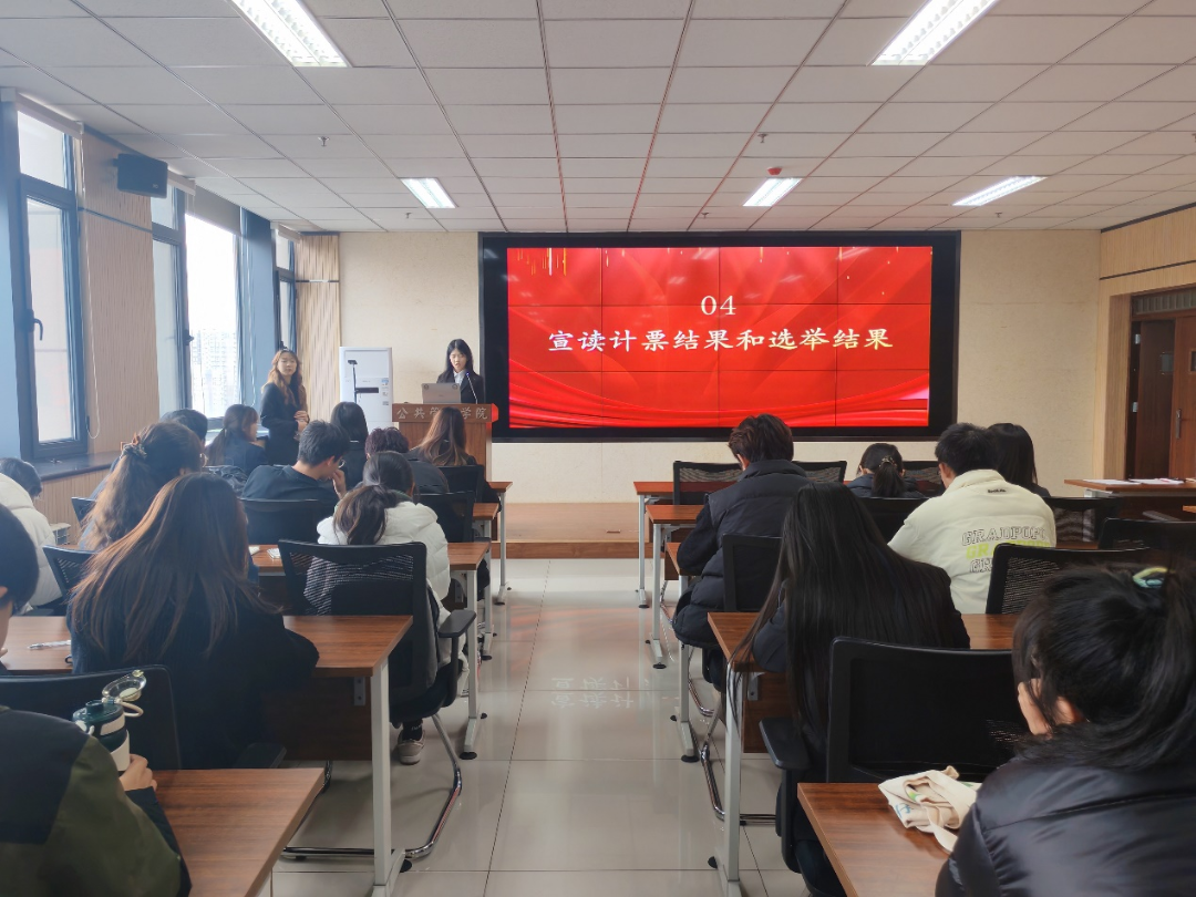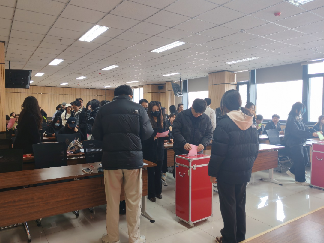 主持人介绍选举规则及候选人,发放选票。投票人填写好选票后,依次将选票投入投票箱内,由学生会秘书处工作人员监票。