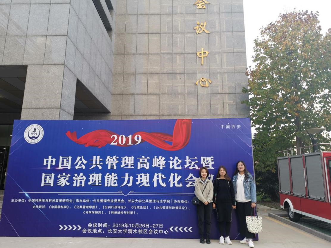 2019年10月26日-10月27日,中国公共管理高峰论坛暨国家治理能力现代化会议在长安大学渭水校区隆重召开。本次论坛由中国科学学与科技政策研究会主办,公共管理专业委员会分会、长安大学公共管理与法学院共同承办。西北大学民政部政策理论研究基地代表汪静、廉姝洁、万思雨及部分本科生代表参与本次会议。