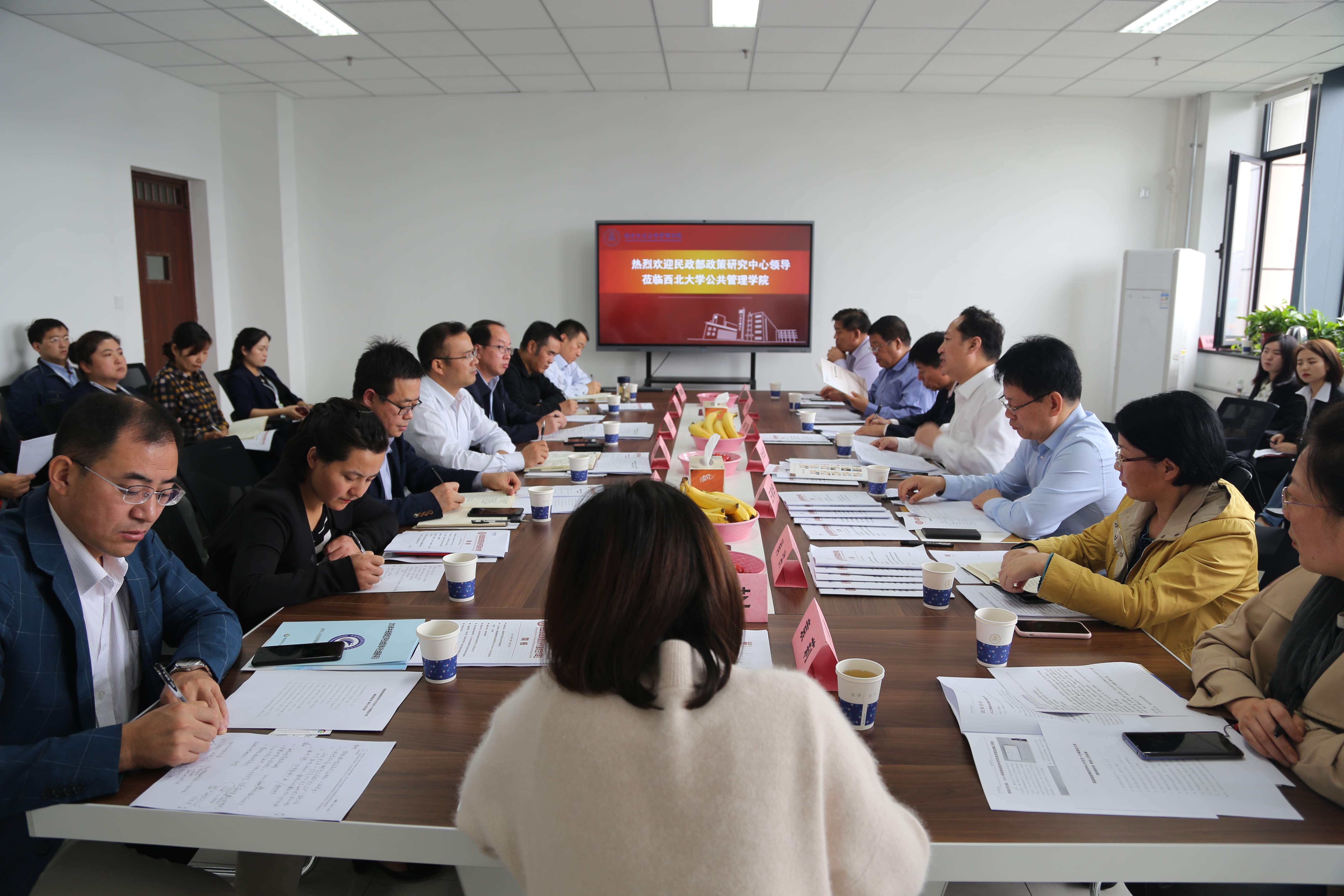 2019年9月18日上午,民政部政策研究中心付长良副主任一行视察西北大学民政部政策理论研究基地合作单位,主持召开座谈会,充分肯定了西北大学研究基地成立半年来取得的丰硕成绩,并对下一步基地工作做出指示。