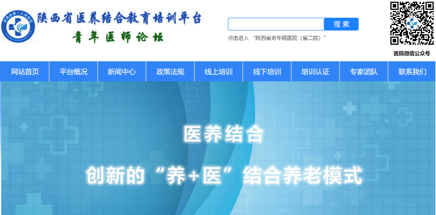 陕西省医养结合教育培训平台(青年医师论坛)是由陕西省第二人民医院主办,西北大学民政部政策理论研究基地合作单位、西北大学565net必赢协助构建的以提供分类化、阶梯型医养结合培训课程体系,提高医养结合从业人员职业能力与素质,提升陕西省医养结合服务水平为目的的平台网站。本平台涉及医养结合相关政策法规,医养结合机构管理人员、医护人员、生活照料人员线上培训课程体系及线下培训课程资料实录,培训认证等内容,为医养结合从业人员提供便捷、可获得的培训教育服务。