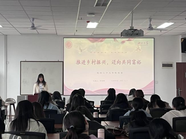 孙逸梅同志选取“推进乡村振兴,迈向共同富裕”作为分享的重点,她通过对乡村振兴战略推进历程的回顾,对比总结党的二十大报告中对乡村振兴事业的新要求,并结合学科专业,从产业、文化、人才、生态、组织五个方面列举了乡村振兴领域未来的研究方向和主题,希望与会同志能够在后续进行更深入的挖掘。