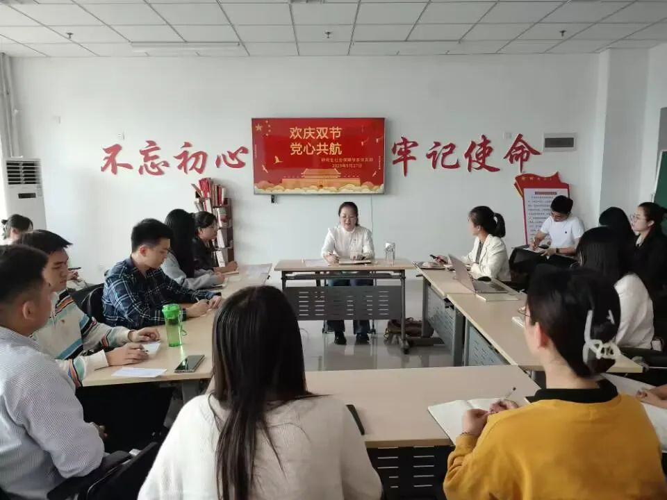 深入学习贯彻习近平新时代中国特色社会主义思想,需要每位党员自觉践行党的先进思想,恰逢中秋国庆双节紧密相连,“家是最小国,国是千万家”。为了培养支部成员爱党爱国爱人民的精神品质,使支部成员坚定奋发向上的信念,增强党员的向心力和凝聚力,强化党员的认同感和归属感,9月27日,研究生社会保障学系党支部在西学楼北1515会议室开展“欢庆双节,党心共航”主题党日活动,会议由研究生社会保障学系党支部书记邓紫皎主持。
