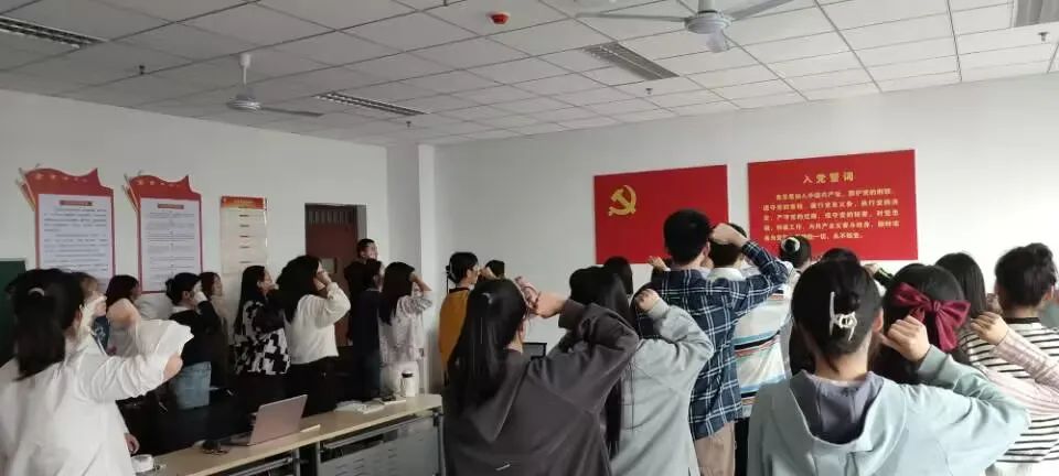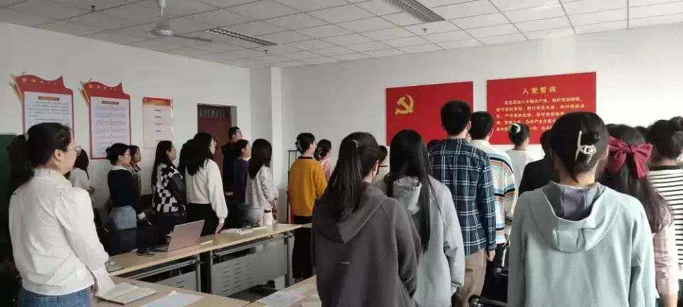 会议伊始,支部书记邓紫皎强调了严肃的会议纪律并简要介绍了此次会议流程及主要内容。随后,支部全体成员齐唱庄严的国歌:“起来,不愿做奴隶的人们,把我们的血肉筑成我们新的长城……”。誓言因铭记而永恒,精神因初心而不灭。随着唱响国歌的结束,全体党员在邓紫皎同志的带领下右手握拳,面向党旗庄严宣誓,铿锵的誓言回荡在会议现场,也响彻在每一位党员的心中,在场的党员同志们无不从内心深处感受震撼,从而奋力践行不忘初心、砥砺前行的使命和担当。