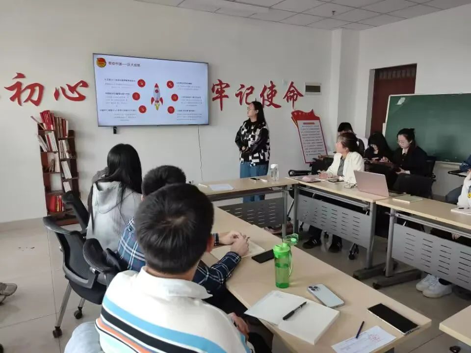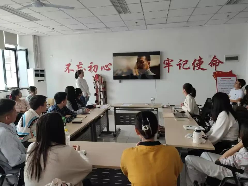 伟人思想光辉,照耀前进道路。支部书记邓紫皎同志带领全体成员观看《觉醒年代》纪录片,体会了从新文化运动到中国共产党建立这段波澜壮阔的历史画卷,同时深刻感知到革命年代老一辈共产党员的责任与担当,凝神聚气,实干兴邦。观看结束后,大家内心受到很大触动,久久不能平静,激发了大家昂扬向上的力量。入党积极分子甘婉婷、郑冰茹、颜羽、徐妍、潘瑞玲等同志结合“欢庆双节,党心共航”主题精神和相关政策文件进行深刻学习。