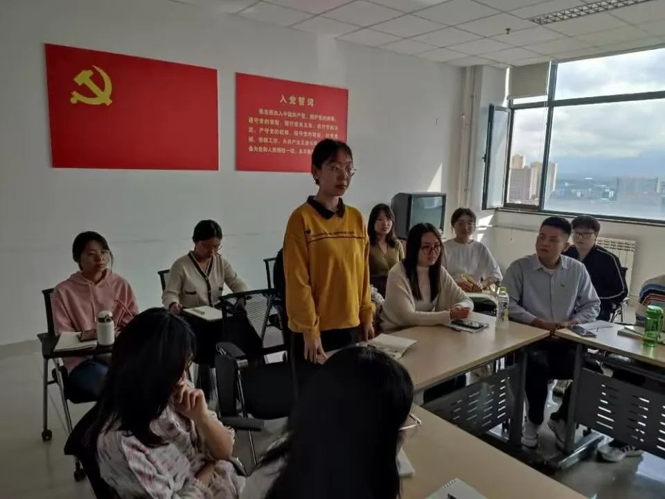 星星点点,汇聚成光。新鲜血液的涌进是基层党支部保持熠熠生辉的重要源泉。会上,支部书记邓紫皎同志介绍了党支部的基本情况并对新加入的党员同志做出热烈欢迎。新同志们一一做了自我介绍并进行交流发言。漫漫研途,上下求索。为给新党员同志一些良好的点拨和指引,支部优秀预备党员顾东明同志结合自己在研究生期间的自身经验,从学习、生活和人际关系三个方面分别做了分享交流。支部成员均表示今后会在研究生学习阶段和日常生活中牢记初心使命,提高自身能力核心素养,以优异的答卷无愧党的培养。