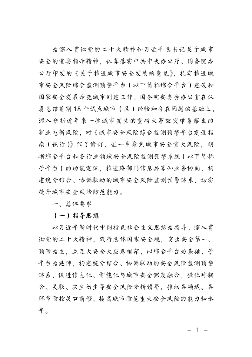 《城市安全风险综合监测预警平台建设指南(2023版)》的通知
