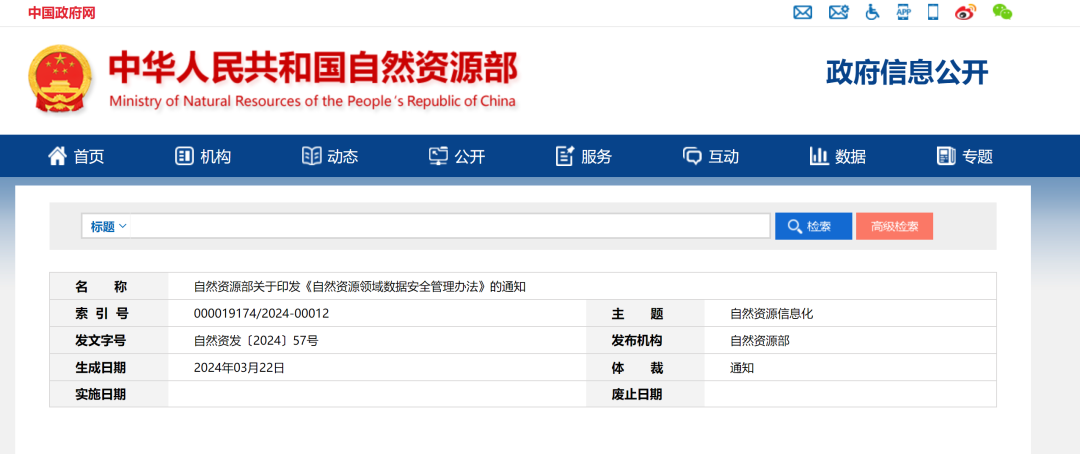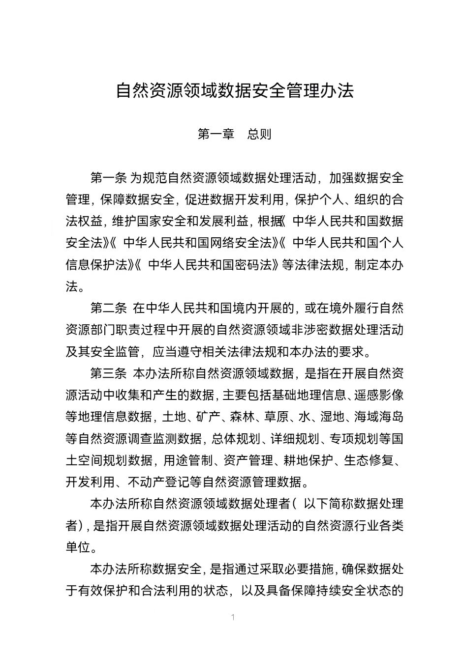 应急政策|自然资源部关于印发《自然资源领域数据安全管理办法》的通知