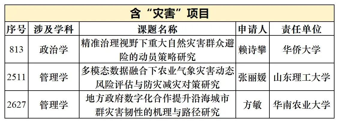 2025年国家社会科学基金项目立项结果近日公布,该文章系统整理了含安全、风险、应急、突发事件、灾害、危机、韧性的相关项目,不仅清晰展现了当前国家层面关注的研究方向与重点领域,更为学界把握科研动态、开展课题申报以及促进学术交流提供了重要参考。