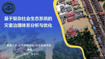 暨南大学唐攀教授作了题为《基于复杂社会生态系统的区域灾害治理体系分析与优化研究》的报告。唐教授首先从郑州市“7.20”灾害案例引入,提出探索天灾与人祸之间的关系问题,他指出,城市环境的复杂性塑造了灾害过程的复杂性,进而推进了其与灾害治理过程的高度耦合,要认识、探索并优化灾害治理体系。然后,唐教授就其团队对滨海快速城市化区域地震灾害链分析、高度城市化区域系统性共安全风险研究、应急管理组织体系复杂性分析、青岛市“11.22”东黄输油管道爆炸应急响应组织网络等研究工作进行介绍。他从基于SES的灾害治理体系建模、灾害治理体系的演化分析、灾害治理体系的能力涌现机制等角度对灾害治理体系的建模、分析与优化进行了阐述。并以此前对粤港澳大湾区应急管理的观察与探索为例,对D区台风灾害治理体系网络和演化性分析进行了详细论述。最后,唐教授提出,未来要坚持用复杂系统的思维模式与研究范式,形成灾害治理体系的分析与研究范式,构建灾害治理体系数据库等措施来推进应急管理体系与能力的现代化。