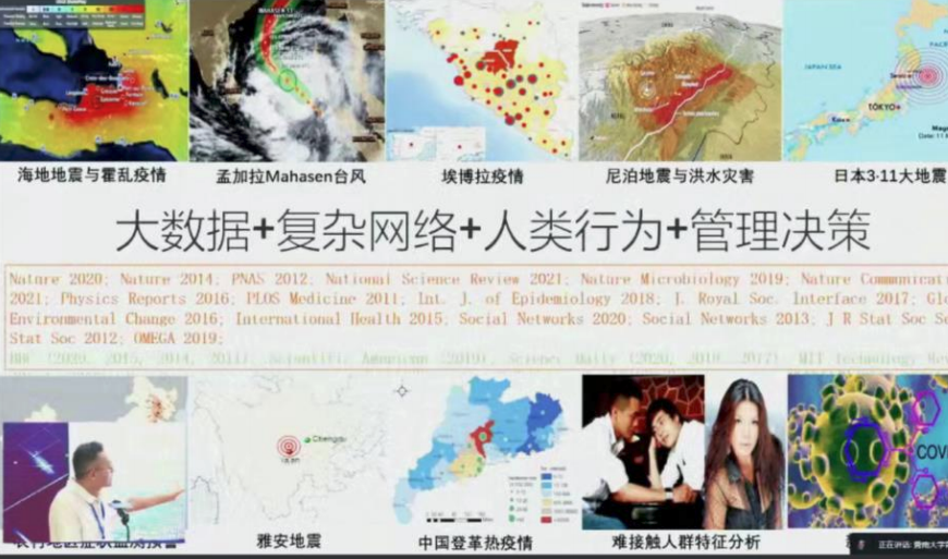 国防科技大学吕欣教授作了题为《大数据,人类行为与应急管理》的报告,报告首先强调了大数据为理解人类行为和应急管理带来了新的机遇,之后具体介绍了大数据如何通过分析灾害条件下的人类行为时间统计规律和空间统计特性来为应急管理提供异常监测和灾后行为预测,最后吕欣教授针对新冠疫情防控就人类行为复杂网络建模进行了分析研讨,并简单介绍了大数据驱动的网络舆情分析和人工社会与仿真计算下中国防控模式帕雷特分析。