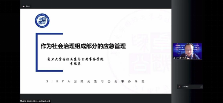 复旦大学李瑞昌教授作了题为《论作为社会治理组成部分的应急管理》的报告,报告首先提出了4个目前新冠疫情防治中出现的新现象和新困惑;接着从应急管理为何是社会治理的组成部分、作为社会治理组成部分的应急管理有何变化、作为社会治理组成部分的应急管理研究方向何在三个问题入手分别进行了具体介绍;最后提出了3点建议对报告进行了总结,即党的报告将应急管理工作定位为社会治理的组成部分、要超越将应急管理只作为政府社会管理职能的组成部分的思路、从社会的多层次构成研究应急管理的多面向性。