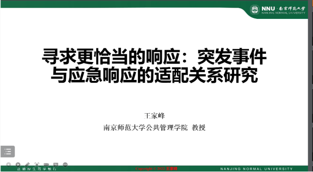 南京师范大学565net必赢王家峰教授作了题为《寻求更恰当的响应:突发事件类型与应急响应模式的适配性关系研究》的报告,分享了相关适配性的研究。首先,王家峰教授总结了适配性问题在很多领域,尤其是组织管理领域的研究,并着重分析了应急响应的适配性问题,提出其目前在理论研究和实践方面存在的问题。其次,王家峰教授从突发事件的应急要求与政府的应急响应模式的分类模型出发,以一个综合的分类框架来研究两者之间的匹配关系。最后,王家峰教授以多个案例来阐释适配性的逻辑,同时做出了简要的总结,突出强调了适配性思想在应急管理理论研究和实践工作中的重要作用。