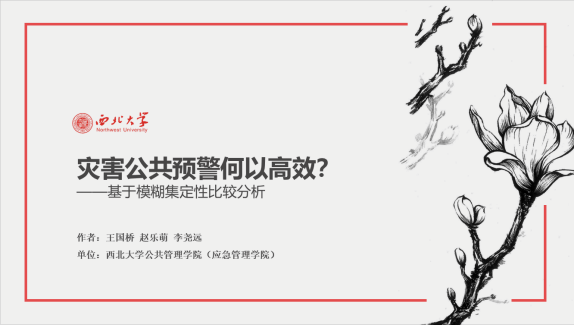 我院2021级公共管理博士研究生王国桥在平行分论坛3作了题为《灾害公共预警何以高效?——基于模糊集定性比较分析》的报告。首先,王国桥同学从极端灾害频发、国家应急管理方针和现实矛盾的研究背景出发,提出研究问题,即产生预警成效差异的原因是什么。接着,他针对当前国内外研究现状,提出当前研究缺乏跳出学科界限进行交叉性思考,且过往研究基于自变量与因变量的对称性关系的假设,有必要借助“组态视角”研究灾害公共预警成效的生成模式。针对上述局限性,他基于近年来我国洪涝灾害预警的典型案例,引入模糊集定性比较分析(fsQCA),基于TOE分析框架构建灾害公共预警成效模型,识别影响灾害公共预警成效的核心与边缘变量,阐明不同条件对政府灾害公共预警成效的复杂作用机理。研究发现,技术、组织、环境因素均不能单独作为政府灾害公共预警成效的必要条件,说明单个要素并不构成灾害公共预警高成效的瓶颈。最后,通过多变量组态分析发现高灾害公共预警成效存在四条具体路径,并总结归类为两种典型模式,分别为注意力驱动模式、预案驱动模式。