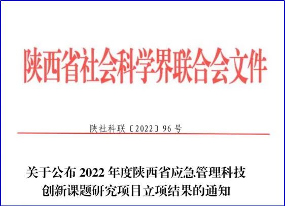 2022年8月15日,陕西省社会科学界联合会公布了“2022年度陕西省应急管理科技创新课题研究项目”立项结果,西大应急团队共获批3项课题。本次课题招标是省社科联与陕西省应急管理厅合作设立。