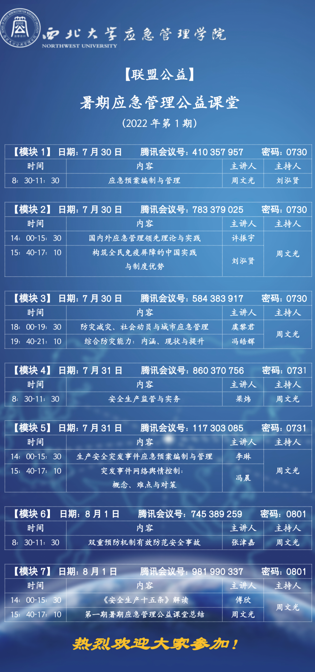 【联盟公益】暑期应急管理公益课堂(2022年第1期)