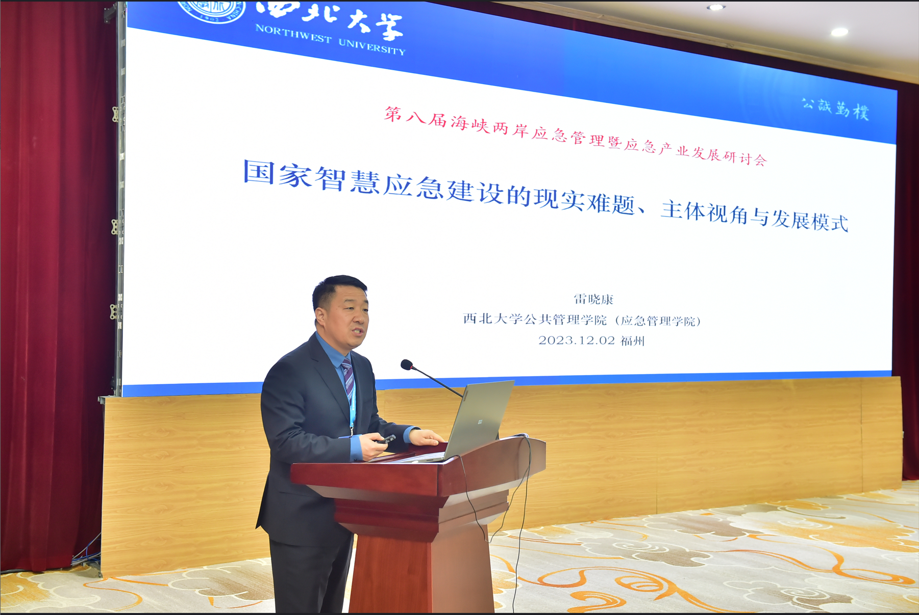 第八届海峡两岸应急管理暨应急产业发展研讨会于2023年12月1日—3日在福州市梅峰宾馆成功举办。会议由福州大学、台湾铭传大学和海峡两岸应急管理学会主办,由福州大学经济与管理学院、台湾铭传大学产推处应急管理中心、福州大学社会科学研究管理处和福建省应急管理研究中心承办,应急管理本科专业高校联盟、全时空应急技术服务 (厦门)有限公司协办。本届研讨会以“应急管理暨应急产业发展”为主题,旨在深化融合两岸在应急管理领域的交流与合作。来自中国科学院科技战略咨询研究院、西安交通大学、泉州市五交科技产业研究院等高等院校、研究院所、社会组织及企业代表共200余人参加本届研讨会。西北大学应急管理学院院长雷晓康教授受邀参加本次会议并发言。